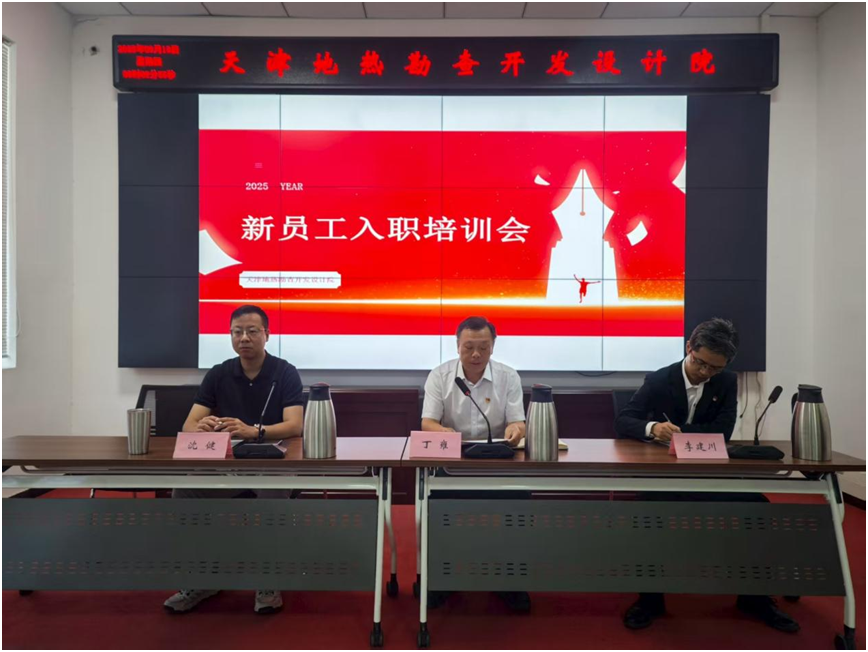 近日,天津地热院举行2025年新员工入职培训会,来自不同学校和专业的新职工齐聚一堂,共同开启职业新征程。院党委书记及院领导班子成员出席活动。